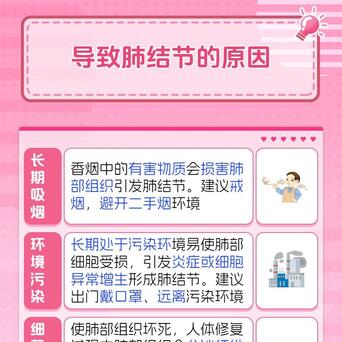 👉1、长期吸烟:香烟中的有害物质,如尼古丁、焦油等,会对肺部组织产生直接的损害,引起肺结节,建议患者应该努力戒烟,避免二手烟环境。